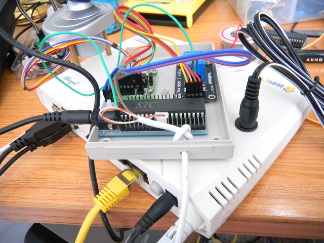 JHOME智能家居系统的 改进之一 发布时间:2012-09-10 13:01:33 · 6582 阅读 · 0 评论 文章标签: http 前几天搭建了一个智能家居管理系统的雏形, 今天做了一点改动先把路由器的12V直流电源引出来 给外部设备供电 在外壳上钻了个空 装了一个插座DB120原为ADSL猫 +路由器 刷机后 猫没用了 那个电话接口没用了 呵呵 , 改装成TTL接口了 做了个电话线头子 当TTL接口 为了好看一点做了二个接头 接在单片机上 可以看到 我给单片机加了个继电器模块通电试试效果 呵呵LED板式以前焊的 当时用18V的变压器 为了改成12v可以点亮 就将后面2排LED给短路了 主要是给摄像头做补光灯用 用继电器开控制电源的开关没有通电的样子 用网页控制起来很方便